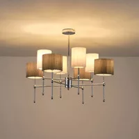 Textilből készült függeszték 8 db E14-es foglalattal, maximális teljesítmény 40 W.