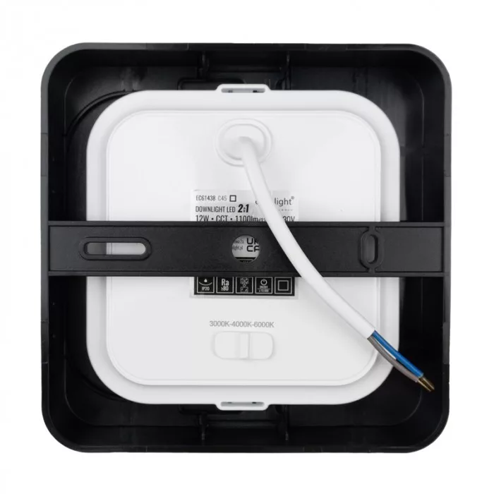 Ecolight 12W-os, négyzet alakú, CCT, fekete, süllyesztett és felületre szerelhető lámpa