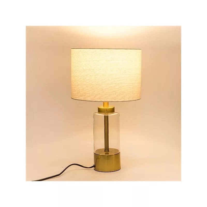 Eurolamp Fém asztali lámpa E27 foglalattal, bézs ernyővel és arany talppal