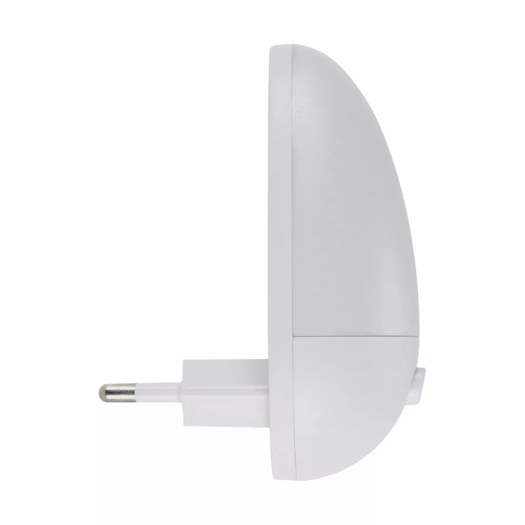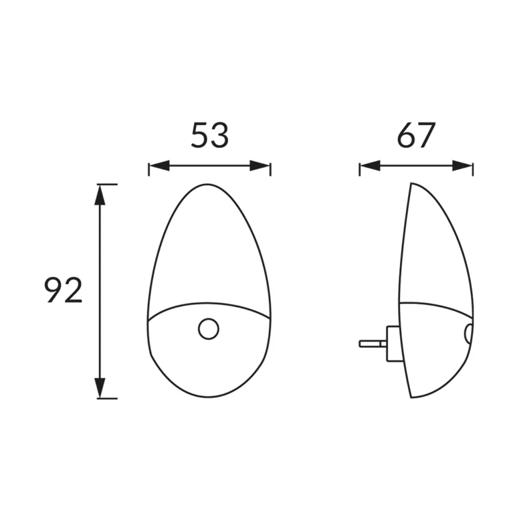 Dekoratív LED éjjeli irányfény dugaszolható lámpa. A kapcsolót tartalmazza.A kibocsátott fény színe hidegfehér 4 DIP ledet tartalmaz.