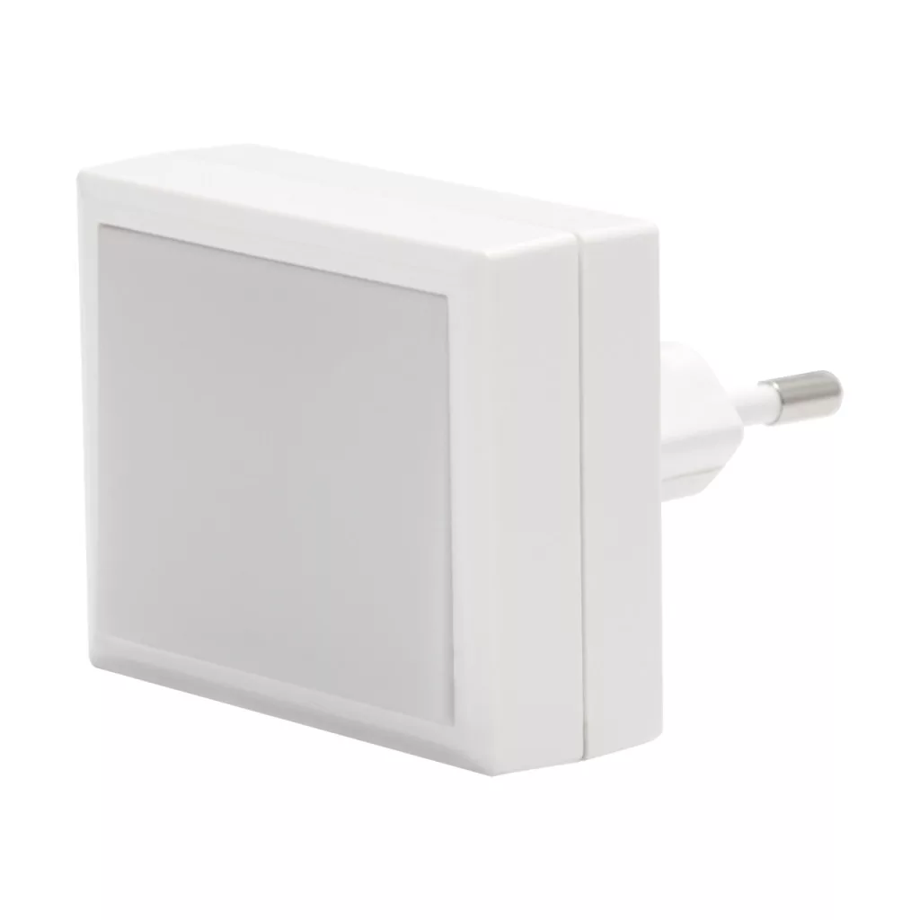 Modern stílusú dugaszolható led éjjeli fény. 4 SMD ledet tartalmaz a kibocsátott fény színe természetes fehér.