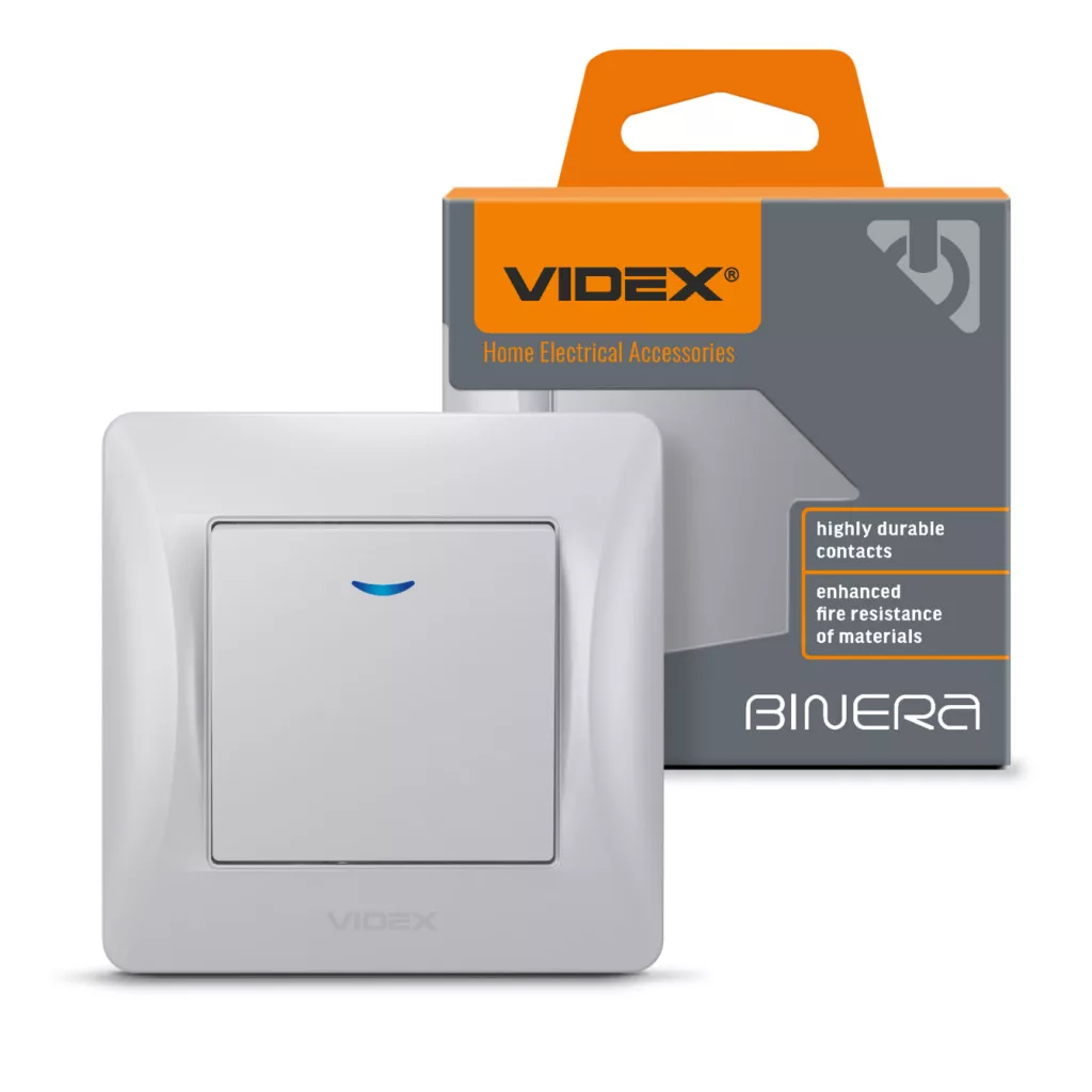 Videx Binera jelzőfényes ezüst színű süllyesztett egypólusú kapcsoló (101) (20/120)
