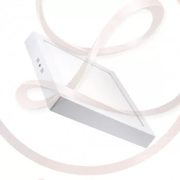 Minimál modern stílus alappillére. Alacsony belmagasságú lakásokba tökéletesen hasznos.  Falon kívüli mennyezeti LED lámpa. Alakja négyzet. Színhőmérséklete meleg fehér 2700-3200 Kelvin. A LED mennyezeti lámpa nem fényerőszabályozható. Külső mérete 210*210 mm. Típusa falon kívüli LED-es mennyezeti lámpa. Teljesítménye 18 Watt. A keret színe fehér. Fényereje 1440 Lumen. 230 Volt feszültségről üzemeltethető. A hálózati üzemeltetéshez szükséges tápegységet és a beépítéshez szükséges füleket tartalmazza.