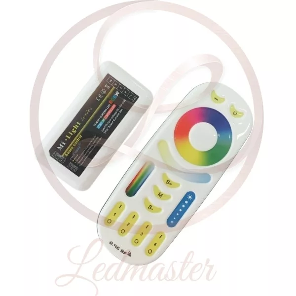 Egy vezérlő egy önálló RGB+CW-WW LED csoport (zóna) működtetésére alkalmas. Több vezérlővel maximum 4 db egymástól független zóna alakítható ki.Az eszköz beállítása rendkívül egyszerű. Mindössze a tápegységséget és a vezérelni kívánt RGB+CW-WW LED szalagot kell a vezérlőbe csatlakoztatni majd a tápfeszültség csatlakoztatását követő 3 másodpercen belül a kívánt zóna ON (I) gombját az RGB távirányítón megérinteni. A vezérlőkre csatornánként maximum 6 Amper áramfelvételű 12/24Voltos LED fényforrás (LED szalag LED modul LED lámpa) csatlakoztatható. Amennyiben az összes csatornát felhasználjuk tehát bekötjük az RGB+W-t akkor csak 10 Ampert bír el a vezérlő. Amennyiben a beépíteni kívánt LED teljesítménye ennél nagyobb úgy LED jelerősítővel kell kiegészíteni az áramkört.Az RGB vezérlő és távirányító segítségével lehetősége van maximum 4 db egymástól független változtatható színű (RGB) LED szalag vezérlésére. A távirányító segítségével az alábbi funkciók érhetőek el:- Tetszőleges RGB szín beállítása (színgyűrű). - Beállított szín fényerőszabályzása.- Színjáték programok használata és ezek sebességének állítása.- Csoportonkénti (zónánkénti) ki- és bekapcsolás. RGB+CW-WW csoport (zóna) távirányító működése- Master On/Off: főkapcsoló az összes csoport ki- bekapcsolása.- Color ring: színgyűrű bárhol megérintve a gyűrűn lévő színre vált a LED világítás.- Indicator: visszajelző LED ha munka közben nem világít akkor nincs feszültség alatt a készülék (lemerült az elem).- Brightness (+/-): a beállított szín fényerejének csökkentése / növelése.- Speed (+/-): a beállított fényjáték program sebességének csökkentése / növelése.- M(odes): fényjáték programok bekapcsolása összesen 9 beépített program.- Zone On/Off: csoportok (zónák) egymástól független ki- és bekapcsolása illetve a ezzel bekapcsoló gombbal lehet párosítani a vezérlőt a megfelelő zónával. -Saturation Control: a kiválasztott szín árnyalatának és telítettségének szabályzása.
