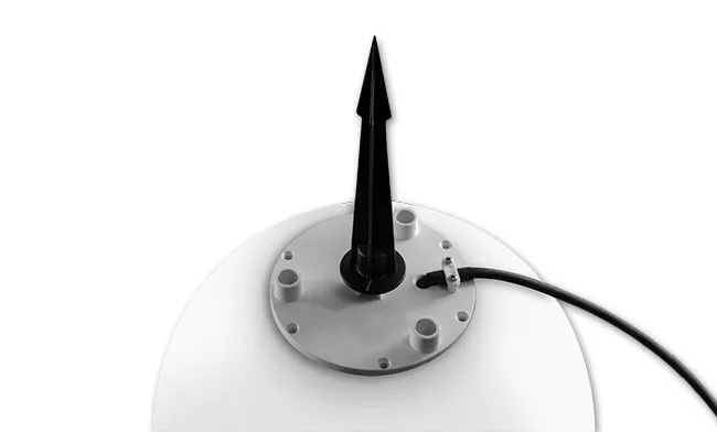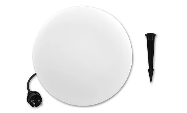 MasterLED földbe szúrható kerti gömb lámpa anyaga műanyag. A gömb mérete 350x340 mm a leszúró mérete 160 mm és a kábel hossza 3 m.