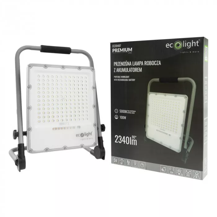 Ez az újratölthető LED-es munkalámpa egy praktikus , 100 W-os fényforrás , amely hatékony megvilágítást biztosít különféle munkakörnyezetekben. 5000 K színhőmérsékletet bocsát ki, ami jobb látási viszonyokat és koncentrációt biztosít. 2340 lm fényárammal büszkélkedhet , amely garantálja a világos megvilágítást még sötét területeken is. A beépített 9 Ah-s akkumulátornak és az egyetlen töltéssel elérhető 3-8 órás üzemidőnek köszönhetően ideális megoldás, ha külső áramforrás nem áll rendelkezésre. Alumíniumból és PC- ből készült , tartós és időjárásálló. IP65 -ös besorolása védelmet nyújt a por és a nedvesség ellen, így beltéri és kültéri használatra egyaránt alkalmas. A 90°-os sugárzási szög lehetővé teszi a fény egy adott területre fókuszálását. Ezenkívül a reflektor villogó üzemmóddal is rendelkezik, ami fokozza a funkcionalitását, különösen vészhelyzetekben vagy jelzésadás esetén. A termékre 3 év garancia vonatkozik , amely megerősíti a magas minőséget és megbízhatóságot.