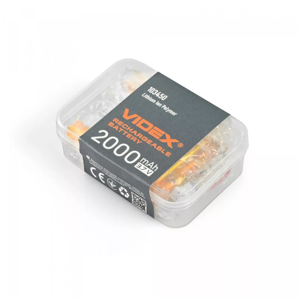 Hosszú túrák vagy kerékpáros túrák esetén mindenképpen szüksége lesz egy további áramforrásra a fejlámpához, ezért ajánlott egy tartalék akkumulátort is tartani, minden esetre. A VIDEX VLF-B103450-20 akkumulátor téglalap alakú, és nedvességtől védett blisztercsomagolásban, biztonságosan lezárva érkezik. Megnövelt kapacitással, 2000 mAh-ra, üzemi feszültséggel 3,7 V-ra, méretei pedig 50 × 34 × 10 mm-esek. A jótállási idő 6 hónap. Az akkumulátor behelyezésével és cseréjével kapcsolatos részleteket lásd a zseblámpa használati útmutatójában.